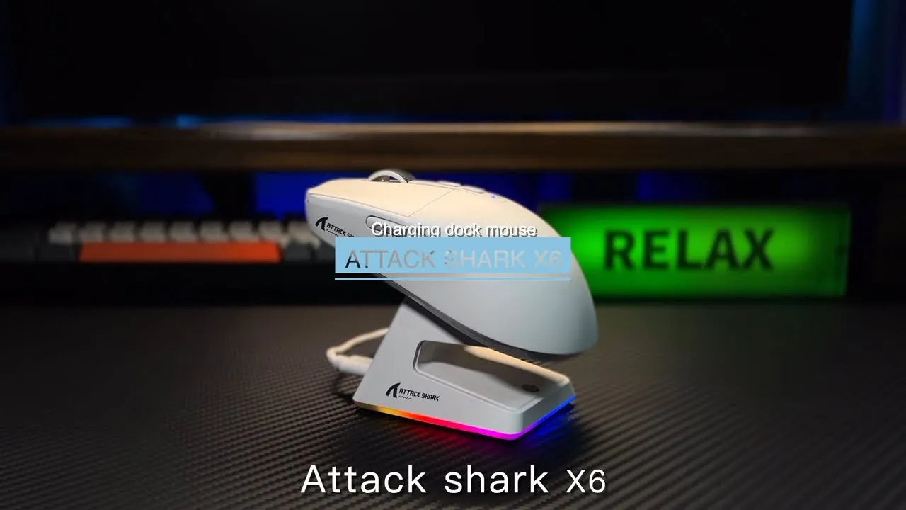 Бездротова ігрова мишка Attack SHARK X6 (26000DPI, 2.4G, BT5.2, Type-C, PAW3395, док-станція з RGB, black)